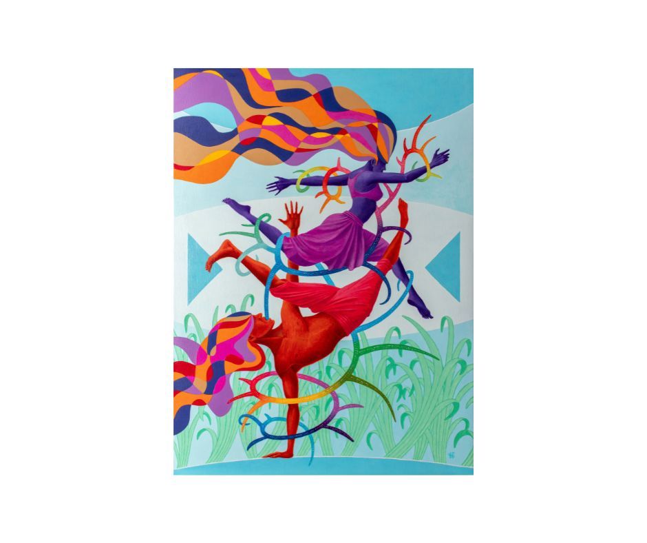 Cette exposition sur le thème de la danse explore le rapport du corps au mouvement et à l’espace. Ses peintures révèlent l’énergie du vivant ainsi que la résonance